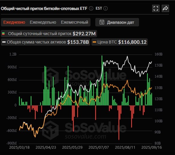 πΈ16 ΡΠ΅Π½ΡΡΠ±ΡΡ ΡΠΏΠΎΡΠΎΠ²ΡΠ΅ Π±ΠΈΡΠΊΠΎΠΈΠ½-ETF ΠΏΠΎΠ»ΡΡΠΈΠ»ΠΈ ΠΎΠ±ΡΠΈΠΉ ΡΠΈΡΡΡΠΉ ΠΏΡΠΈΡΠΎΠΊ Π² ΡΠ°Π·ΠΌΠ΅ΡΠ΅ $292 ΠΌΠ»Π½