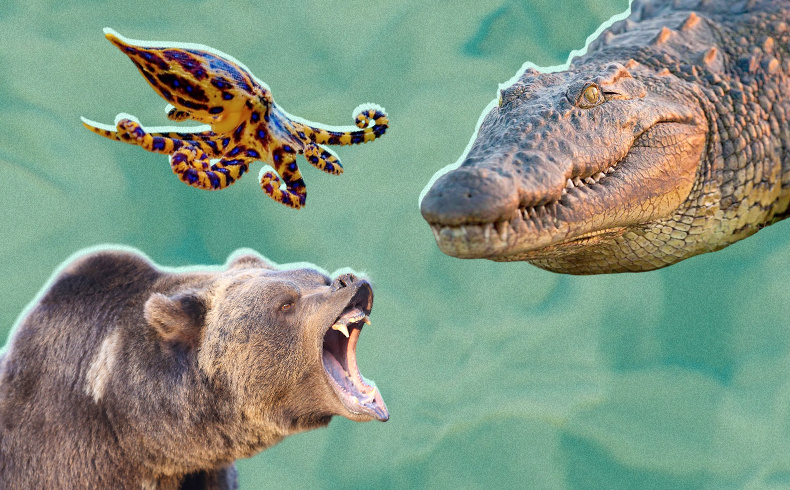 Забудьте всё, что видели в зоопарке. В дикой природе нет милых глаз, только инстинкт и выживание. Эти существа не будут разбираться, кто вы, они прирождённые машины для убийства. Он может лежать часами, не двигаясь, а потом за секунду вылететь из воды и утащить добычу на дно. Весит под тонну, длина до 6 метров, ест людей. В год фиксируют до 300–400 смертей от их зубов. Да, шанс быть съеденным акулой минимален. Но если уж она выбрала вас, то прощай. Сотни зубов, скорость до 60 км/ч и чуткое обоняние. Она чувствует кровь за 3 километра. Хуже всего, что она может укусить «на пробу», а этого уже достаточно, чтобы потерять конечность. Звучит странно, но именно слоны ежегодно убивают до 500 человек. Эти ребята не любят людей в своем пространстве. И если вы ему не понравитесь, то 6 тонн ярости будут топтать, пока не забудешь, как вас звали. Укус тайпана — и вы труп, если рядом нет антидота. Теоретически, один укус может убить до 100 человек. Этот змей не агрессивен, но если на него наступить,