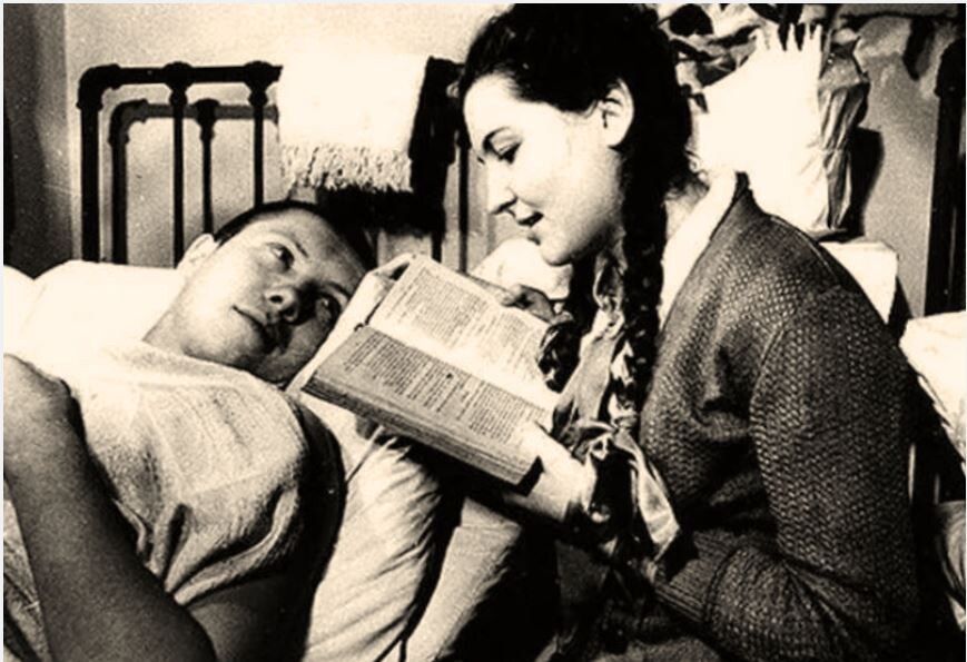 Томочка, девятнадцатилетняя медсестра, стояла в стороне и не сводила глаз с раненого. Её сердце сжалось, будто боль этого человека перелилась в неё. Слёзы защипали глаза. Она никогда ещё не видела таких ожогов, взгляд её был наполнен жалостью.