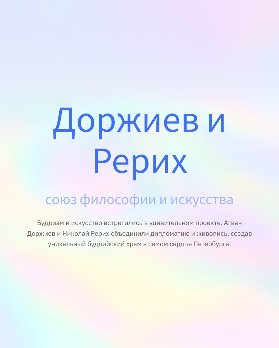 Агван Доржиев и Николай Рерих — два мыслителя, объединившие буддийскую философию и искусство. Их сотрудничество в строительстве буддийского храма в Петербурге сделало Калачакру уникальным памятником, где встречаются Восток и Запад. 🕌 Доржиев — дипломат и наставник Далай-ламы XIII, инициатор строительства. Рерих — художник, создавший символику и росписи, превратив храм в произведение искусства. 👉 Больше историй о бурятских деятелях и их роли в мировой культуре — в канале https://t.me/universe_buryat .