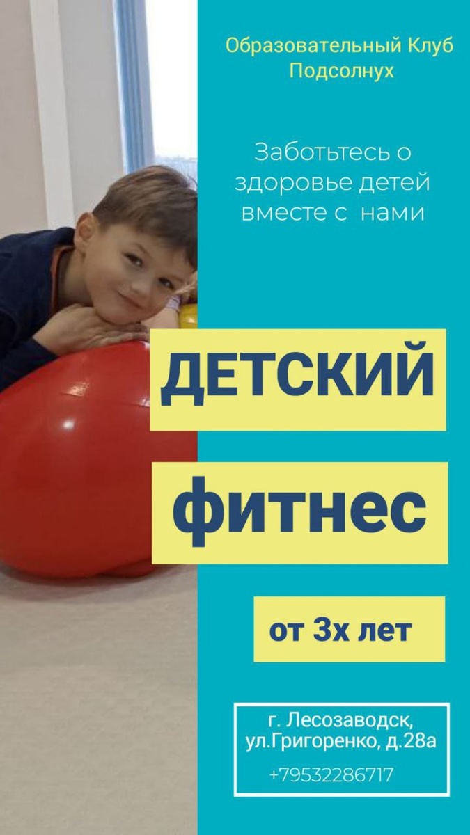 📣Приглашаем детей от 3-х лет в спортивную группу «Детский фитнес»🤸🏼 🔸создание и укрепление мышечного «корсета» 🔸формирование красивой осанки 🔸поддержание здоровья позвоночника 🔸развитие гибкости и координации движений 🔸улучшение работы сердечно-сосудистой и дыхательной системы 🔸снятие нервно-эмоционального напряжения 💯Тренировка эффективна и безопасна ☝🏻Упражнения и уровень нагрузки подобраны с учетом физиологических и анатомических особенностей детей 👉Подходит для детей разного возраста и с разной степенью физической подготовки. 🗓2 раза в неделю (среда,пятница)18.00 Заботьтесь о здоровье детей вместе с детским клубом "ПОДСОЛНУХ"🤗 📞+79532286717 г. Лесозаводск, ул. Григоренко, д. 28А