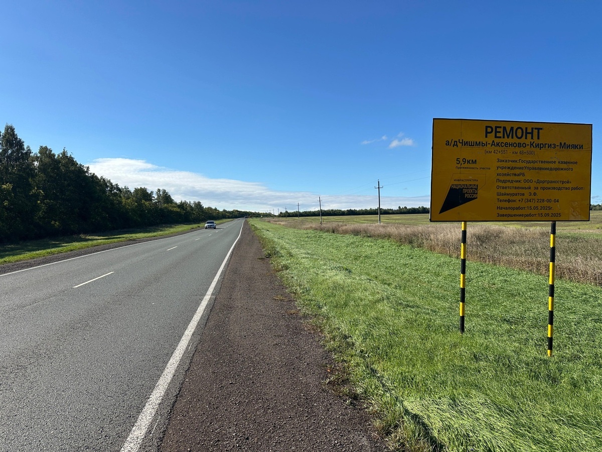 В Башкирии отремонтировали участок трассы Чишмы − Аксеново – Киргиз-Мияки