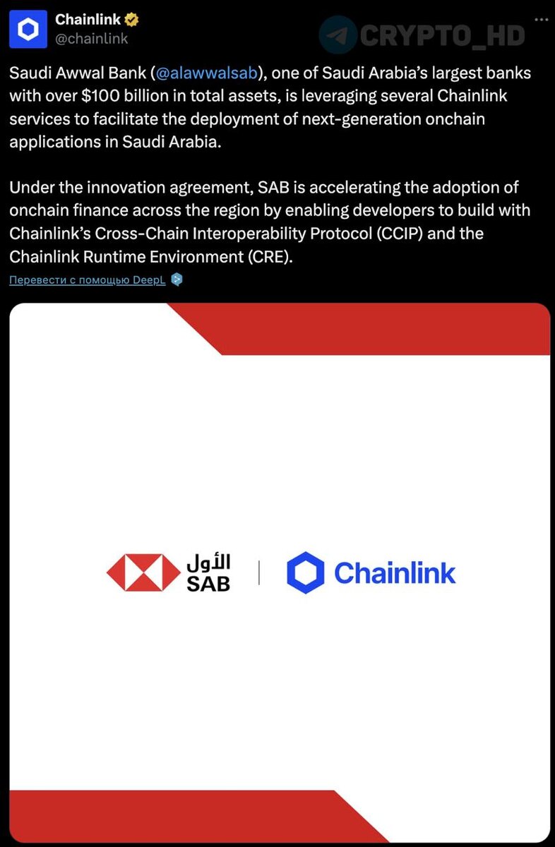 🇸🇦 #LINK Chainlink – партнерство с Saudi Awwal Bank