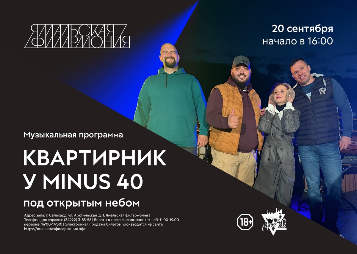 💙 СЮРПРИЗ! Спрос — выше крыши Специально для вас, мы открываем дополнительный сеанс «Квартирника у MINUS 40» Не успели на вечер? Вот ваш второй шанс попасть на камерный open-air: живое исполнение любимых треков, близкое общение с артистами и панорама осеннего Салехарда. Атмосфера — максимум уюта, тёплые пледы и согревающие напитки на месте. - Когда: 20 сентября, 16:00 (дневной сеанс) - Где: Салехард, крыша Ямальской филармонии - Вечерний остаётся: 20 сентября, 19:00 🎫 Билеты доступны по ссылке: https://quicktickets.ru/salehard-yamalskaya-filarmoniya/s703 Количество мест строго ограничено!