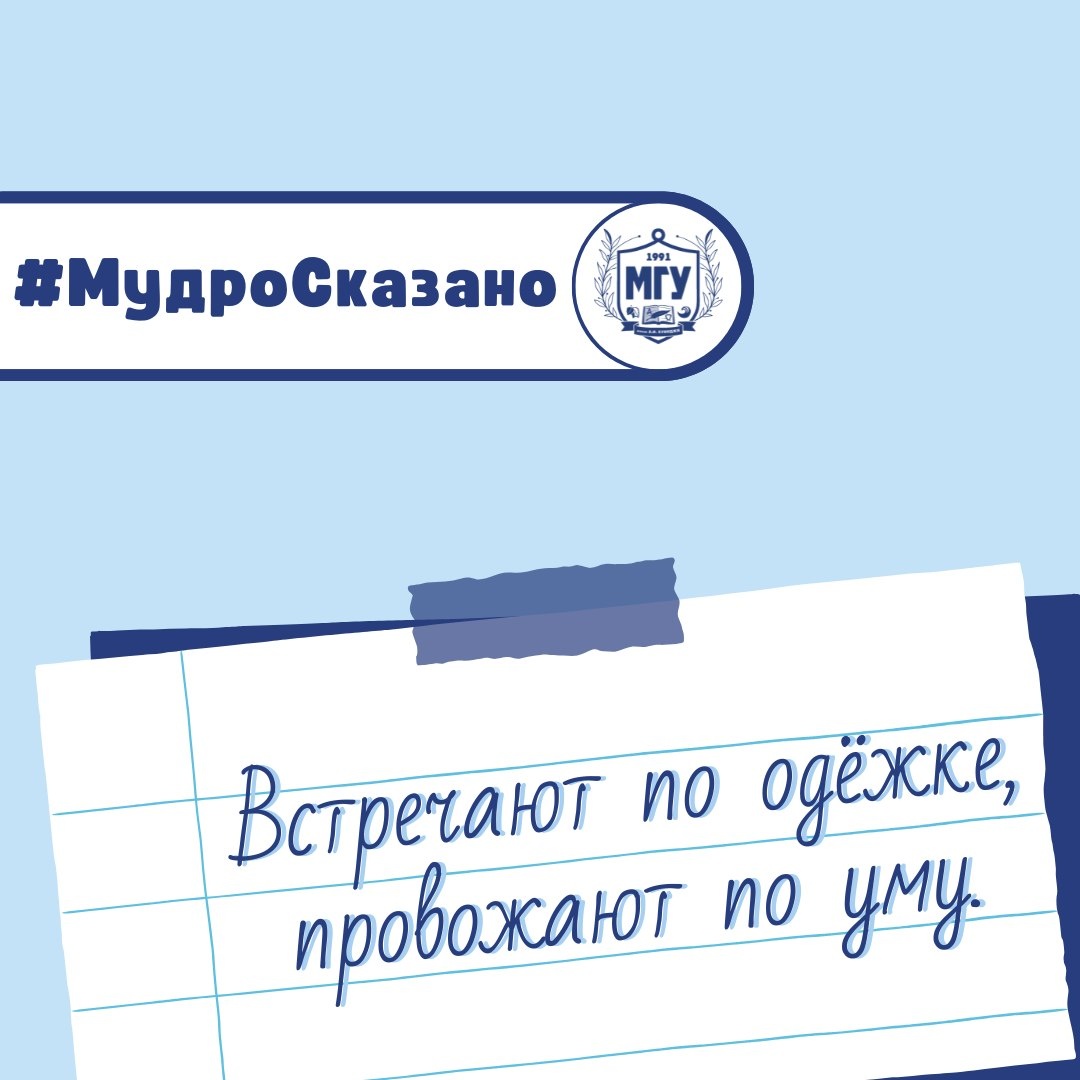 ✅ «Встречают по одёжке, провожают по уму». ➡️ Первое впечатление действительно играет важную роль: внешний вид и манера общения могут многое сказать о человеке. Но настоящая ценность личности раскрывается через интеллект и поступки. То, как мы думаем, какие решения принимаем и как относимся к другим людям — именно это остаётся в памяти и формирует наше истинное лицо. 💙 А какие пословицы помогают вам в учёбе и жизни? Делитесь в комментариях! #МГУимениКуинджи