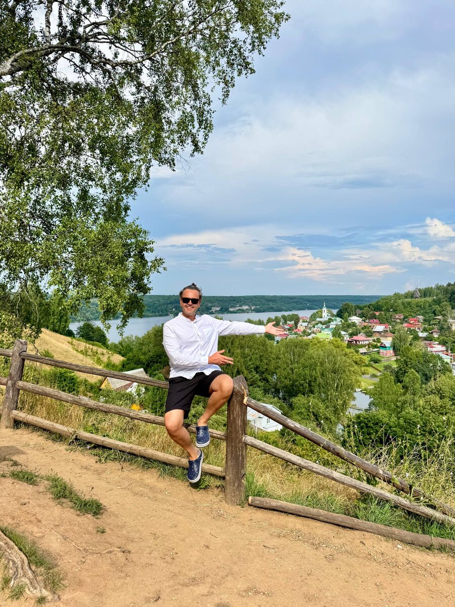 Мы обедали на открытой веранде, протянув под столом нахоженные ноги, с наслаждением отпускников, когда из-за соседнего стола, громко отодвинув стул, поспешно встала девушка, в невообразимом ковбойском образе, и прижав телефон плечом к щеке, с кем-то общаясь, сообщила: «Я не в Москве. Я в Плёсе. Слушай, это другая планета!», и удалилась курить самокрутку. Девушке на вид было лет 35-45. Да, с таким разбегом. Нынче модные дамы все ухоженные, залитые тем самым бальзамом вечной тридцатипятилетности, что стирает возраст, оставляя лишь намёк на прожитые годы где-то в глубине глаз. И я задумался. Где же ты путешествовала до сих пор, моя дорогая ковбойша с нанопокрытием и телефоном последней модели? Что с тобой происходило, что обычный русский городок — пусть и прекрасный, пусть и с видами, от которых заходилось сердце у Левитана, — вызывает в тебе такую тектоническую смену всех понятий? Это же не Галапагоссы. Это — Плёс. Здесь ходит речной трамвайчик, а не летают беспилотные такси. Здесь пах