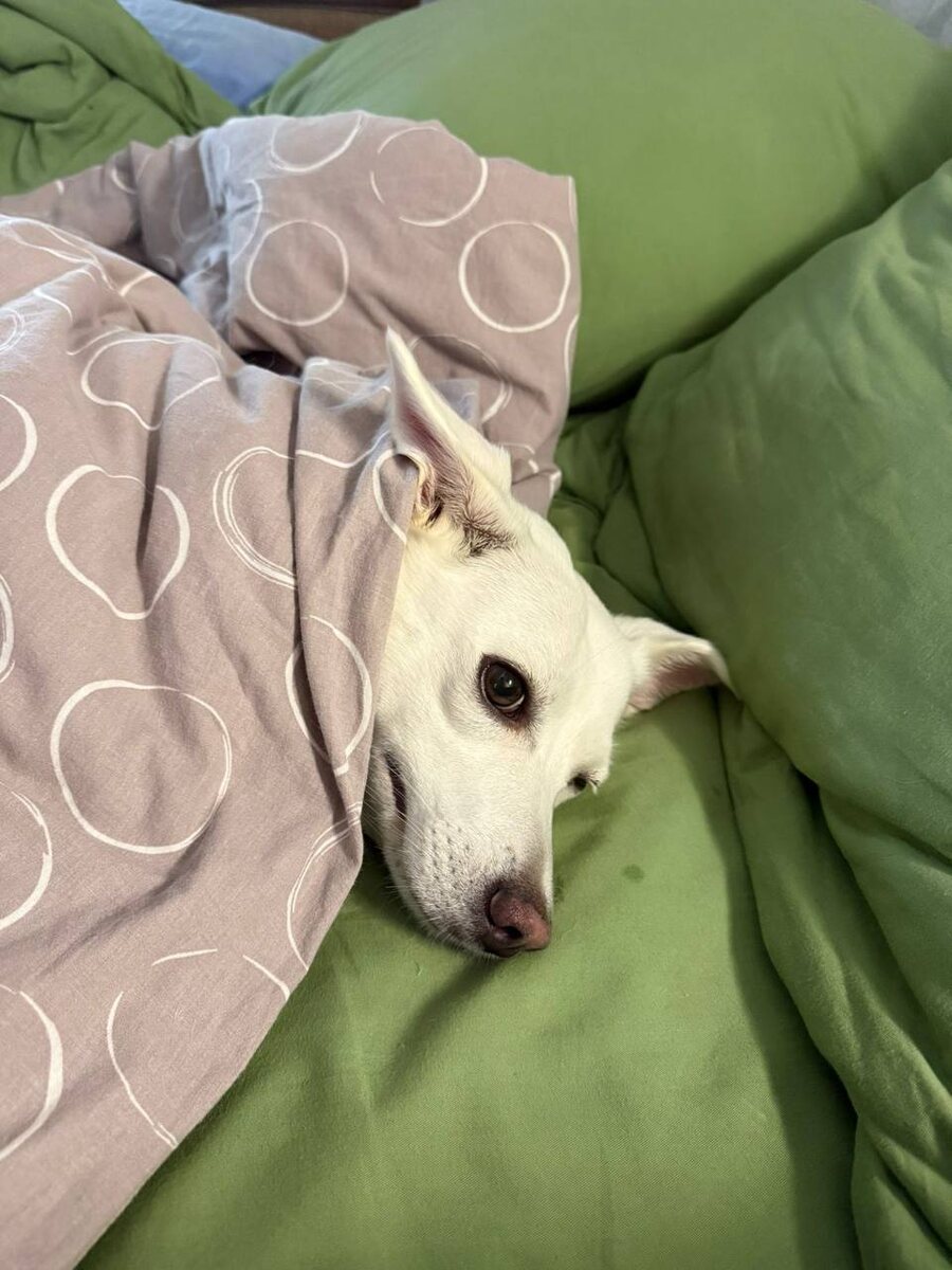 Привет из дома💌 от хранительницы диванного тепла - Юми!🤗 Мамка на работу - Юми тоже на работу - постель охранять. Не дай бог кот посягнёт на неприкосновенность хозяйской кровати🤣. И воообще, любименькую хозяюшку надо от всего охранять тоже. В том числе и от кота🙀. А за работу Юми получит награду - вкусняшку! Если Алиса позволит🤪 #собака_юми #sobakinazhizn_дома БЕРИТЕ СОБАК ИЗ ПРИЮТОВ. ОНИ ЗАМЕЧАТЕЛЬНЫЕ