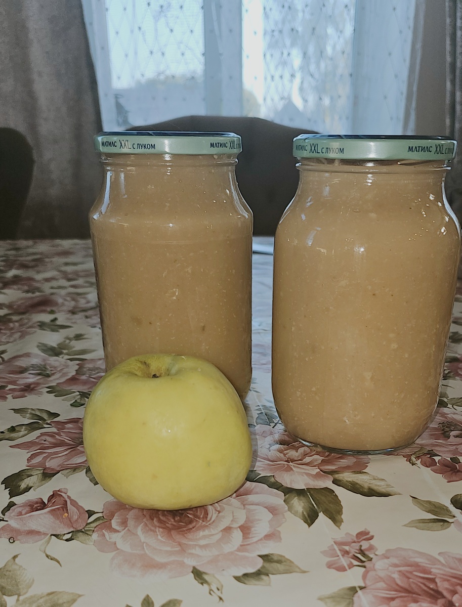 Судя, по урожаю яблок в этому году, кого-то изгнали или массово изгонят из Рая ;)Друзья, если Ваша фантазия иссякла, а яблоки еще не закончились, но Вы не сдаетесь, то ловите , Рецепт ароматного, нежного яблочного пюре (мусса) со сливочным вкусом, шелковистой текстурой "Райские облачка". 4 кг садовых яблок. 1 стакан сахара (Стакан 200 мл) 2 стакана воды 1 банка сгущенки рогачевская. Яблоки моем, снимаем с них кожу и удаляем семена, режем на некрупные кусочки, наливаем 2 стакана воды и тушим яблоки , помещивая, до тех пор пока они не станут мягкими ( минут 25, после закипания ), как только яблоки стали мягкими, насыпаем сахар и тушим еще минут 10 до полного их размягчения, помешивая. Пробиваем погружным блендером в однородное пюре , добавляем банку качественной сгущенки, у меня Рогачевская (если некачественная , она свернется, Рогачевская точно качественная). И прогреваем еще 5 минут, помешивая, разливаем горячим в стерилизовпнные банки. Можно подать в креманках , как Мусс с краси