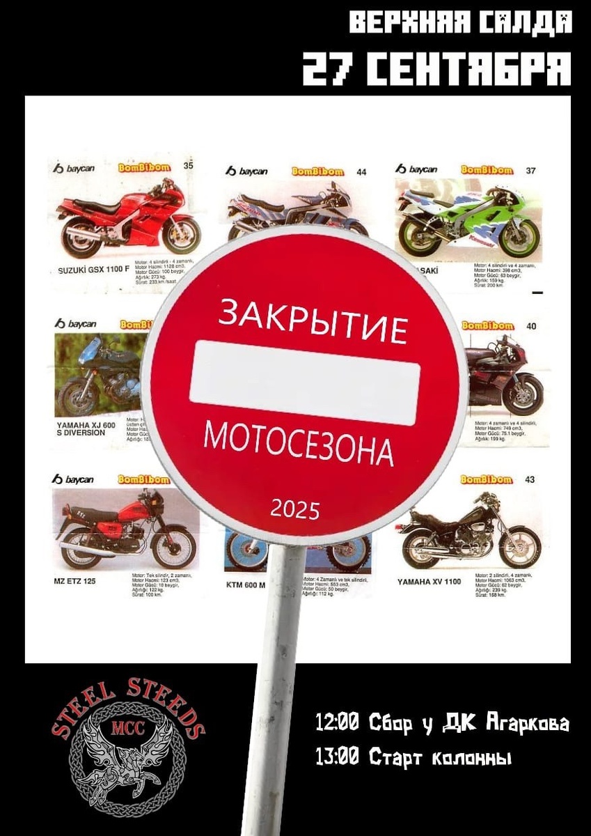 ⛔️27.09. в городе Верхняя Салда, на дворцовой площади состоится закрытие Мото Сезона 2025 🚳🍁 •12:00 - общий сбор; •13:00 - построение и старт колонны. Motorcycle •[ЕКБ] МОТО•Летим по "Road-Book 111" в тумане, ничего не видно. 🤟 https://t.me/ek6moto #мотосезон2025 #екатеринбург #ekbmoto #moto Источник: Открыть