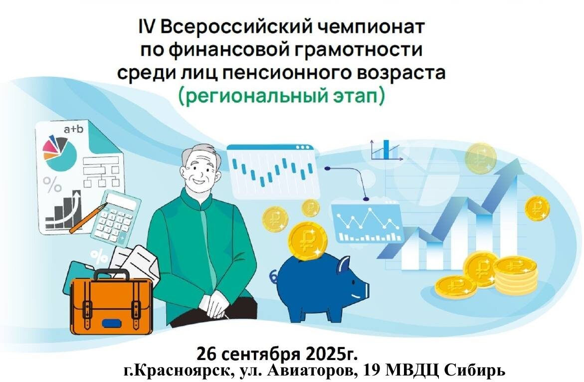 Красноярские пенсионеры, проверьте свою финансовую грамотность и выиграйте призы! 🏆💰 С 26 сентября по 4 октября пройдет Всероссийский Чемпионат по финансовой грамотности для людей старшего возраста. Проверьте, насколько хорошо вы разбираетесь в бюджете, управлении деньгами и защите от мошенников! 📅 В Красноярске мероприятие состоится 26 сентября в МВДЦ "Сибирь" (ул. Авиаторов, 19) с 10:00 до 14:00 в рамках "Дней старшего поколения". 🔹 Почему стоит участвовать? ✅ Полезные знания о финансах ✅ Интересные задания ✅ Шанс выиграть призы 📌 Как зарегистрироваться? → https://clck.ru/3NkoVW ℹ️ Подробнее о Чемпионате https://fingram.rea.ru/chempionat Не упустите возможность проверить себя и узнать что-то новое! 💡😊 #Красноярск #ФинансоваяГрамотность #ЧемпионатДляПенсионеров #ДобраяСреда