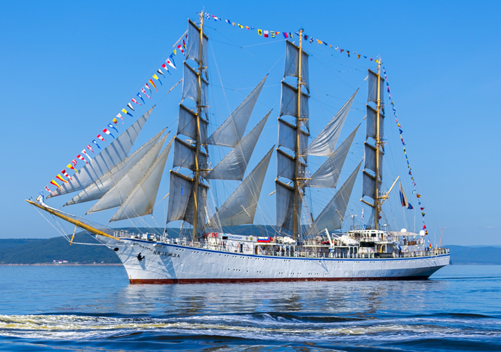 - Владивосток. Старт из «российских ворот в Тихий океан». Вы никогда не забудете момент, когда «Надежда» выйдет из бухты Золотой Рог под полной парусностью — это зрелище, от которого захватывает дух.