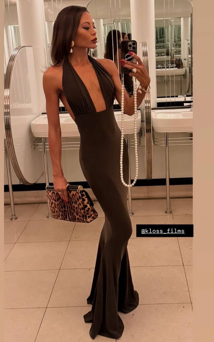 Начнем день с шоколадного образа маркизы Бат Эммы. Самый модный оттенок этого года маркиза дополнила леопардовой сумкой Sicily от итальянского дуэта Dolce and Gabbana.