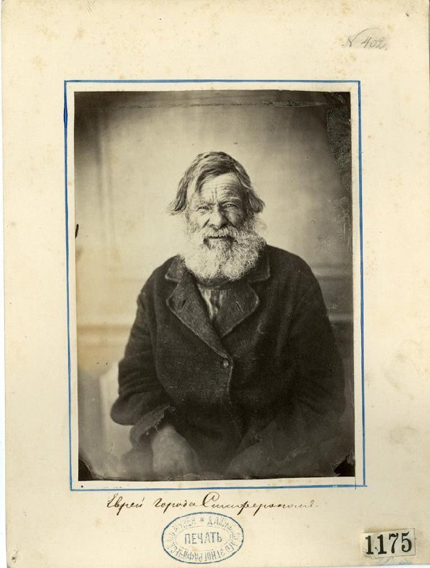Еврей города Симферополя. 1866 год. Автор фото: ??? Отпечаток на солёной бумаге. Размер: 16,5 x 11,7; 24,2 x 18,1 В 1847 г. в Симферопольское еврейское общество входили общины собственно Симферополя (431 человек), а также Ялты (87 человек) и Евпатории (30 человек). После Крымской войны 1853–56 гг. приток ашкеназов в Симферополь существенно возрос. По некоторым данным численность евреев-раввинистов в Крыму в 1863 году составляла более 5000 человек. Фотография экспонировалась на Русской Этнографической выставке 1867 года в Москве. Из фондов: Российский Этнографический музей (РЭМ), Санкт-Петербург. Коллекционный номер: РЭМ 8764-21557 #Симферополь #этнография #история