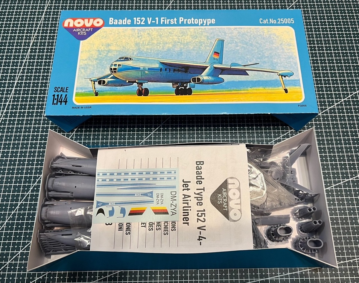 Московская "АНГАР 72" показала состав набора своей выпускаемой на 3D-принтере модели прототипа единственного созданного в ГДР реактивного пассажирского авиалайнера Baade152V1 в масштабе 1/144.