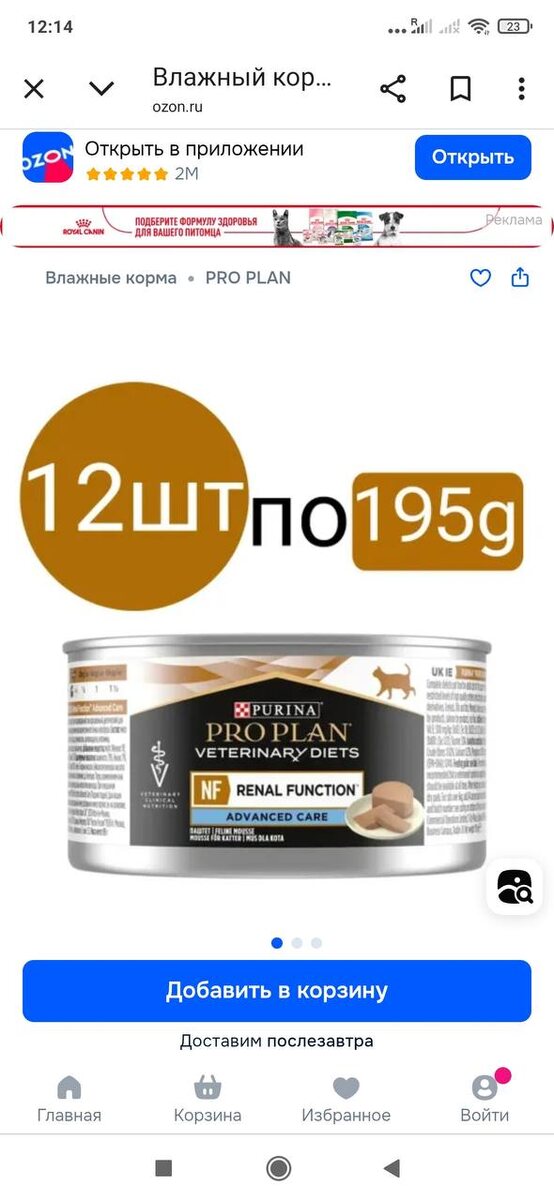 Друзья, Лариса попросила заказать на Озоне именно такой влажный корм для болеющих котиков, может, кто сможет его заказать? Очень нужен🙏 Ростовская обл. г. Донецк, проспект Ленина, 19А ( только этот пункт выдачи, по другому адресу заказ не заберут, вернётся на склад!!) Вы можете сделать заказ со своего аккаунта. После того как посылка будет в статусе «готова к получению» просим вас отправить * qr-код для получения * скриншот заказанных товаров (или написать список) нашему волонтеру Яне в WhatsApp по номеру +79183537389 , которая направит заказы Ларисе в Луганск. Либо скидывайте код мне в личку, с кем есть переписка. У кого нет- пишите под любым постом- я с вами свяжусь)