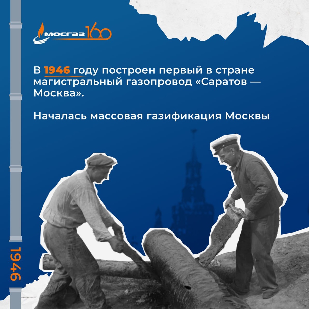 Продолжаем знакомиться с историей газового хозяйства Москвы ⮕ В 1941 году, в разгар войны, в районе Елшанки под Саратовом была пробурена первая газовая скважина с впечатляющей продуктивностью в 700 тысяч кубометров газа в сутки. ⮕ Уже в 1944 году, несмотря на трудные времена, был утверждён проект строительства газопровода «Саратов — Москва». Этот 843-километровый путь стал жизненно важным для обеспечения столицы газом, что открыло новые горизонты для промышленности и быта. ⮕ 10 июля 1946 года саратовский газ впервые пришел в Москву, ознаменовав начало новой эры. С тех пор газовая сеть Москвы продолжала развиваться, обеспечивая комфорт и тепло миллионам людей. Этот проект стал основой для создания Единой системы газоснабжения России. #ГазовомуХозяйствуМосквы160 @aomosgaz