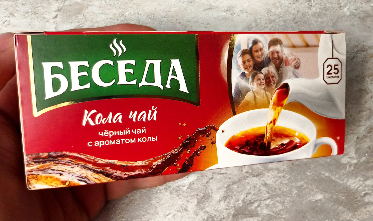 Всем привет! Сегодня будет обзор чая. Предполагаю, что многие будут писать что пакетированный чай это и не чай вовсе. Но я пью чай разный. Бывает покупаю листовой. Часто покупаю пакетики с различными вкусами. В последнее время купил много различных пакетиков и решил сделать небольшой обзор. Первый чай от бренда Беседа. Много чаев я покупал, но со вкусом колы увидел впервые. Мне кажется, только у них есть чай с таким вкусом. Чай с ароматом колы. Зачем он такой нужен вообще? Проще колы попить обычной. Зачем так изгаляться? В составе черный чай, корица, цедра лимона, стевия, ароматизатор пищевой. При заваривании идёт аромат колы. Во вкусе он очень слабый, но есть. Ещё это чай сразу сладкий. Опять же чувствуется, что это сахарозаменитель. Сладкий, но не такой как от обычного сахара. В общем не очень. Не знаю кто такое будет пить) фанаты Кока-Колы? Вот такой чаек по хорошей акции прикупил в Чижике. Самое интересное в этом чае то, что он холодный. То есть его нужно заливать холодной