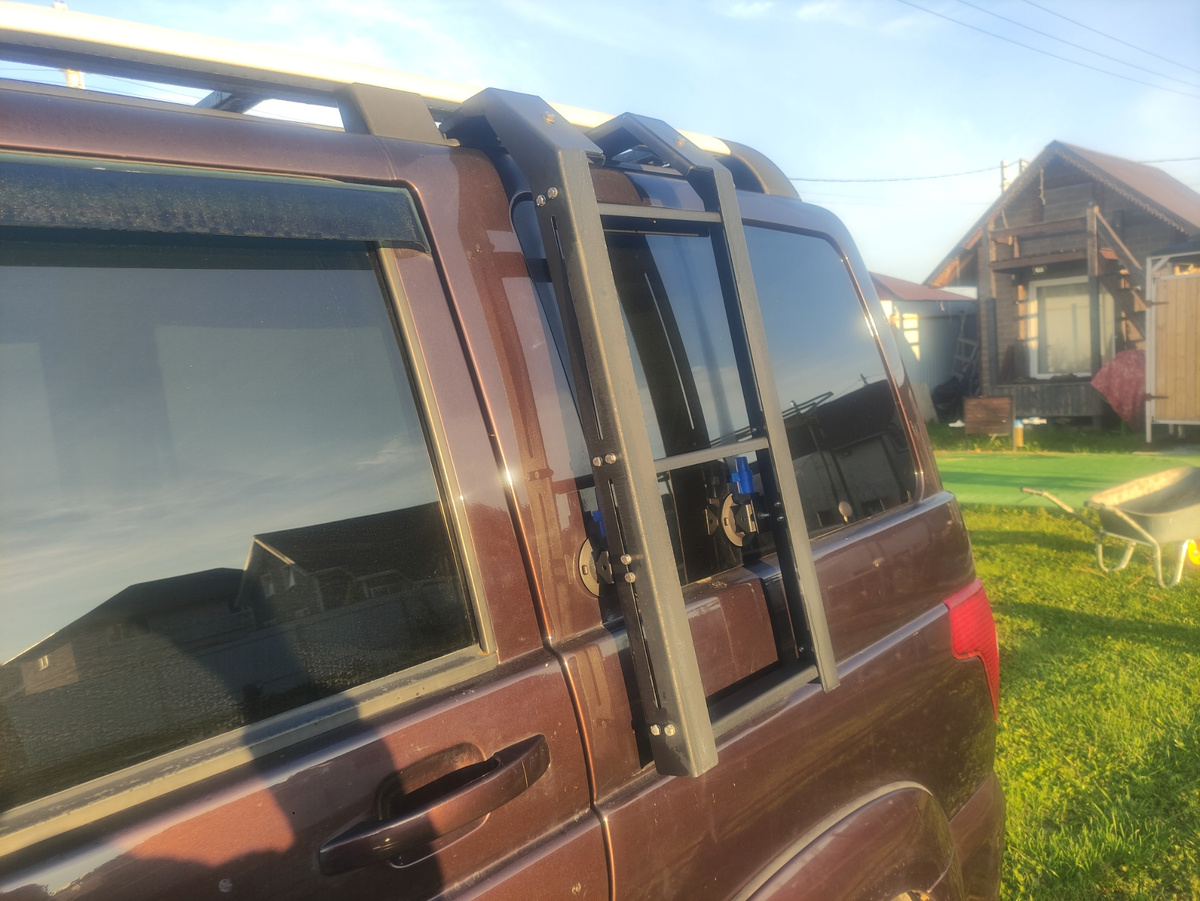 Раз уж вы так настаивали, и слово, как говорится, не воробей, расскажу вам о своей давней проблеме с доступом к багажнику на крыше моего УАЗ Patriot. Долгое время я искал подходящую лестницу, но было одно существенное условие: я категорически не хотел сверлить или как-то иначе повреждать кузов автомобиля. Это обстоятельство сильно тормозило поиски. Даже рассматривал вариант использования штатного механизма, но, увы, штатного багажника у меня не было, поэтому крепить что-либо сверху было просто не к чему. До этого момента на крыше у меня была установлена платформа, а как на нее забраться – оставалось загадкой. Первое время я обошелся подножкой, которая, кстати, свою функцию выполняет, хотя и вызывает некоторое опасение при использовании. Фотографии этого решения можно найти в моем бортовом журнале. Но вот, наконец, в интернете мне попалось настоящее чудо – то, что я так долго искал! Фирму называть не буду, потому что они мне за это не платят, а я человек весьма практичный. Так что насла