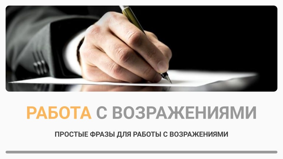 💬 Работа с возражениями: простые фразы Возражения — это не «нет», а запрос на уточнение. Простая структура ответа — принять → уточнить → предложить решение. Методика в 3 шага - Принять: показать, что услышали клиента («Понимаю, цена кажется высокой»). - Уточнить: задать вопрос, чтобы понять причину («Что именно вызывает сомнение?»). - Предложить: вариант решения, гарантию или пилот («Можем начать с пилота за X ₽»). 5 рабочих фраз и когда их использовать - «Понимаю, цена кажется высокой. Скажите, какой у вас ориентир по бюджету?» — при возражении по цене. - «Если нужно уменьшить бюджет, могу выделить минимальный MVP за X» — компромисс. - «Могу показать кейс с похожей задачей и результатом за 4 недели» — при отсутствии доверия. - «Кто в вашей команде принимает решение и по каким критериям?» — прояснить процесс покупки. - «Давайте договоримся о пилоте/гарантии: если не будет результата — компенсируем часть» — уменьшает риск для клиента. Как практиковать - Запишите типичные возраже