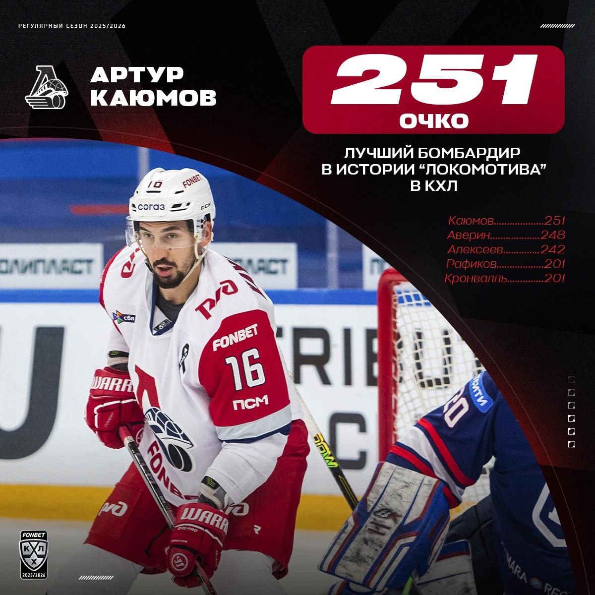 Неплохое начало сезона: Артур Каюмов 🚂 стал лучшим бомбардиром в истории «Локомотива» в КХЛ!