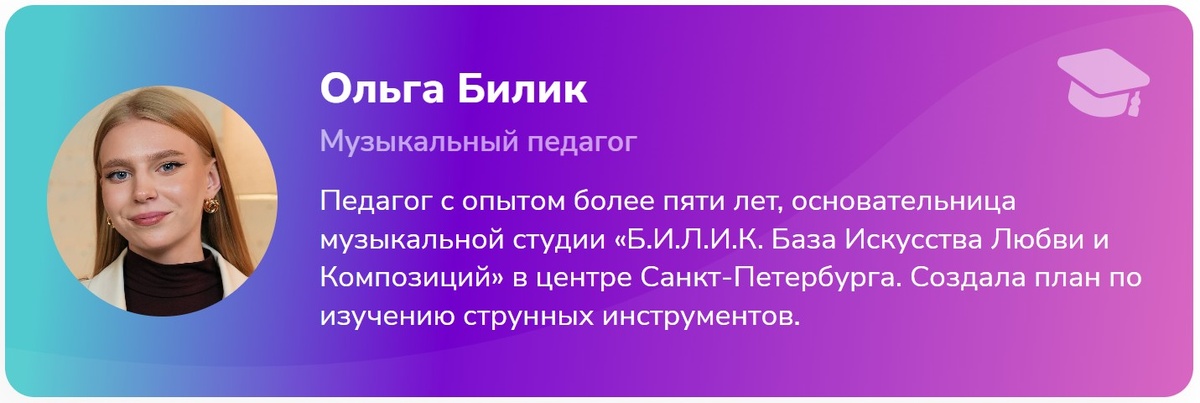 «После первых уроков курса вы сможете ставить аккорды и играть свои первые песни самостоятельно. И это только начало!» 🌟