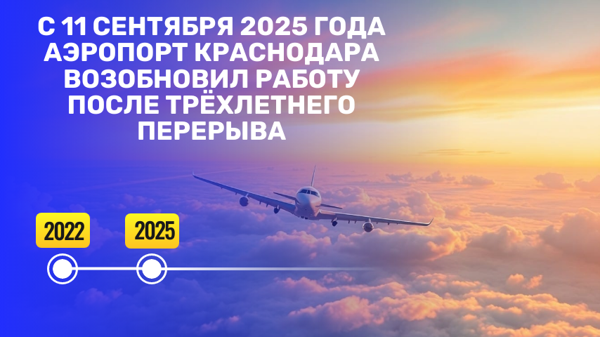 Министерство транспорта Российской Федерации 11 сентября объявило о возобновлении работы аэропорта Краснодара, закрытого с конца февраля 2022 года по причинам безопасности. Первым рейсом в Краснодар отправится самолет авиакомпании "Аэрофлот" модели Airbus A321. Продолжительность полета составит примерно четыре часа: вылет состоится в 06:30 утра, прибытие запланировано на 10:25 утра. Изначально количество рейсов между Москвой и Краснодаром будет варьироваться от одного до трех ежедневно, однако впоследствии планируется увеличить частоту до пяти ежедневных перелетов.