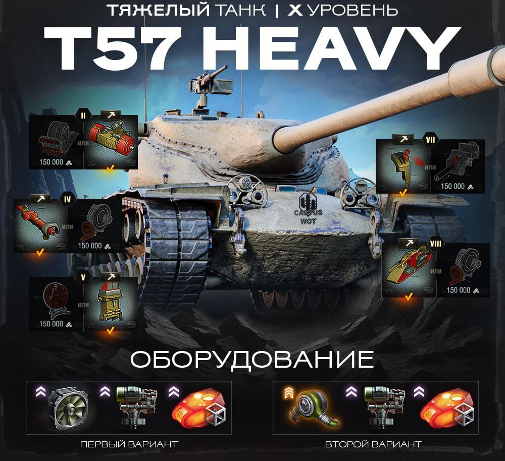 🌵Далее расскажу про тяжёлый танк X уровня T57 Heavy 🇺🇸 Танк улучшили, показать сборку на него просто необходимо. 🌵Оборудование и полевая модернизация у вас на картинке. ➕ Плюсы танка: • много урона с барабана (+ быстрое КД между снарядами) • комфортные УВН • неплохая динамика ➖ Минусы: • мало снарядов • не лучшая точность • слабоватая броня в бортах Если сборка понравилась — ставьте 👍 Чтобы посмотреть информацию про другие танки, пользуйтесь хештегами (просто нажмите на нужный тег, вам покажутся все посты по выбранной тематике) 👇 #базазнаний@cactuswot
