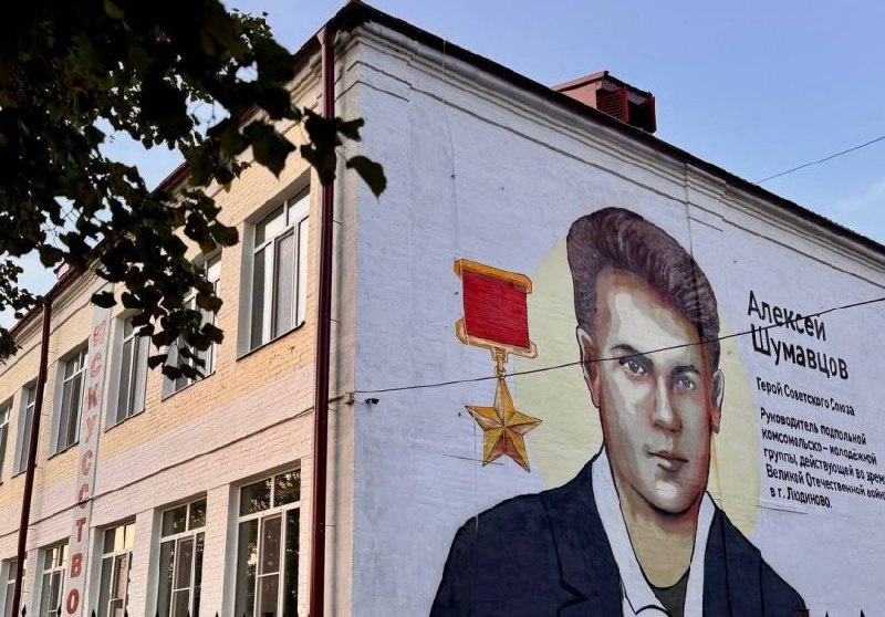 В Людинове открыли мурал в честь героя-подпольщика Алексея Шумавцова