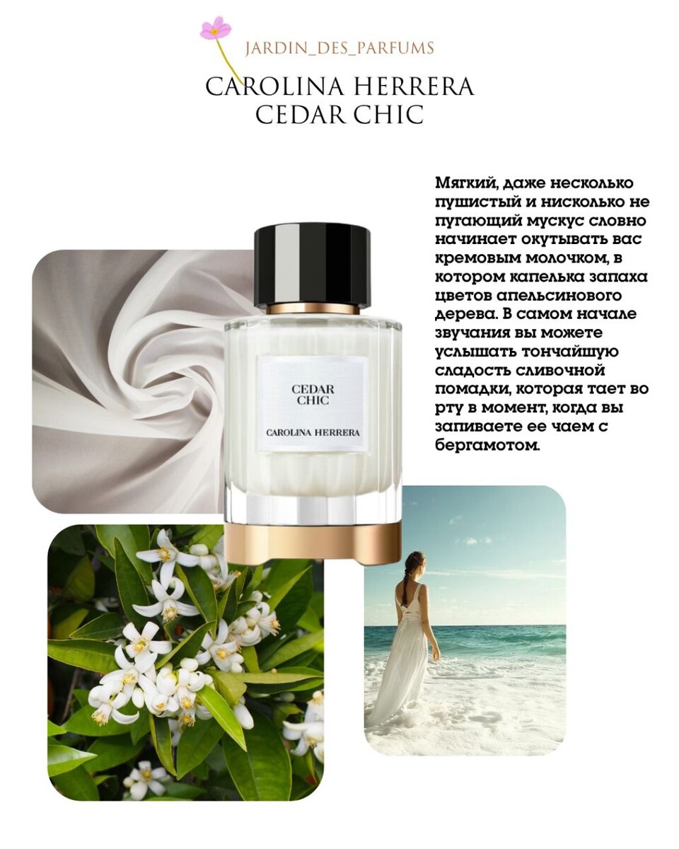 Carolina Herrera Cedar Chic позиционируется как унисекс, тк опять же, как я всегда говорила, понятие чистоты, безукоризненности и ухоженности - это не только условные ярлыки для женского пола. На красивого мужчину также приятно смотреть. Хотя подобные мускусные обертоны в наших широтах могут восприниматься более феминно, я могу сказать, что экспериментам путь открыт...муж вернется с работы и я протестирую его на нем, даже любопытно, как грубость мужской кожи отыграет нежность и тактильную ласку этого аромата.