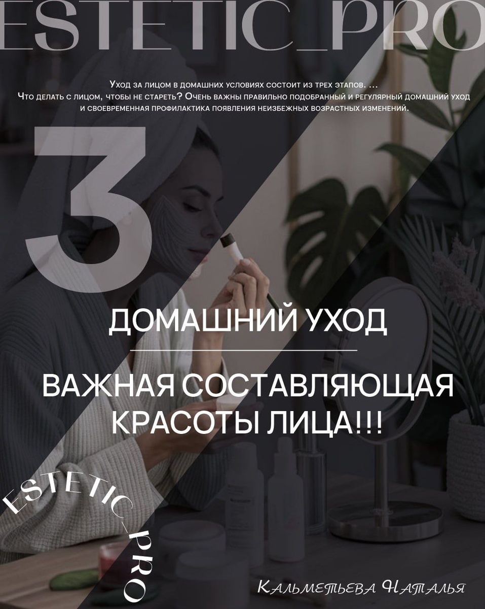 Привет, мои дорогие ! Настало время для третьего слова в нашей игре ! А пост N3 посвящён домашнему уходу за лицом. Важные факты: 1) уход за кожей лица - это 20% ухода в кабинете косметолога и 80% ухода дома. Не будет красивой и здоровой кожи, если даже один раз в неделю вы посещаете косметолога , а дома используете "пленочный" масс-маркет . Например, крем, который создаёт воздухонепроницаемую пленку! И когда вы такой крем наносите после качественной уходовой процедуры в кабинете, то вы не только нивелируете эффект от процедуры, но и обрекаете свою кожу на обезвоженность и распространение патогенной микрофлоры. Т.о. качественный домашний уход - это не просто пролонгирование эффекта от салонный процедуры, но и поддержание кожи лица в здоровом состоянии. 2) Один лишь качественный домашний уход может надолго улучшить состояние кожи, а исключительно салонный- на длительное время - нет ! Берегите ваше #лицо ! Оно с вами надолго 😁.