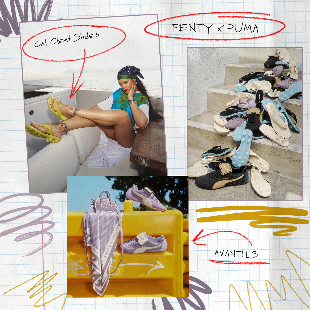 Новый коллаб FENTY x PUMA — микс спорта и стритстайла. Линейка состоит из футбольных сандалий Cat Cleat Slides, кроссовок AVANTI LS, аксессуаров и базовых вещей. Все очень в духе Рири: стильное, сдержанно яркое и модное. Лавандовые кроссовки — наш фаворит. Больше интересного на нашем сайте POIZON