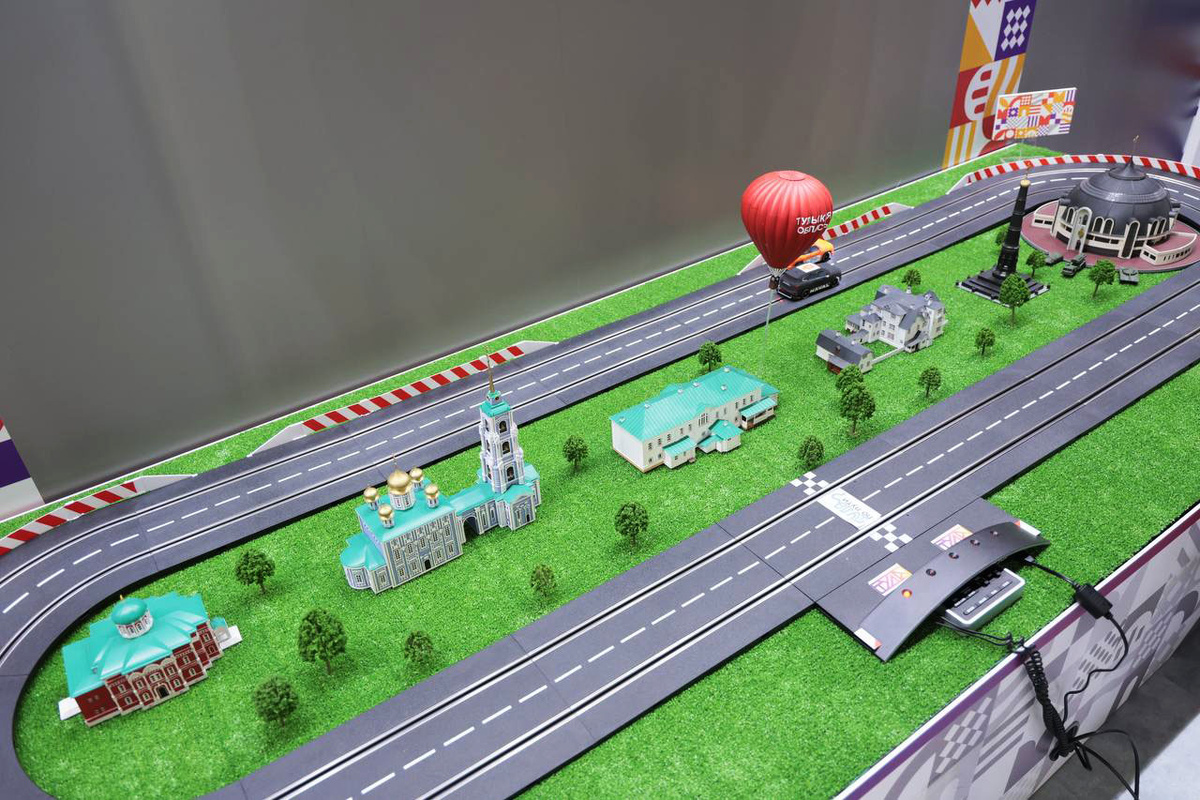 Необычный интерактив подготовили для гостей стенда Тульской области на выставке «Регион-2030» (0+), которая проходит в Москве. Они могут устроить гонку «мини-хавалов» с помощью велосипедов. Достаточно просто покрутить педали. Велотренажеры подключены к миниатюрному шоссе, на котором уже в боевой готовности стоят копии автомобилей, выпускаемых в Тульской области. Чем энергичнее крутишь педали, тем быстрее едет машина. В центре шоссе также можно увидеть главные достопримечательности региона. Например, музей оружия, усадьбу Льва Толстого «Ясная Поляна», памятник-колонну Дмитрию Донскому из Куликова поля и др. ПО ТЕМЕ: «Презентация переросла в планерку». Замминистра спорта РФ о Тульской области на выставке «Регион-2030»