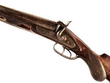 Один из интересных образцов такого оружия продается за 495 британских фунтов стерлингов. Это дульнозарядное ружье Викторианской эпохи, выпущено мастерской братьев Томаса и Уильяма Харрисон в городе Карлайл примерно в 1847-1858 годах 19 века. Стволы выкованы из дамасской стали.