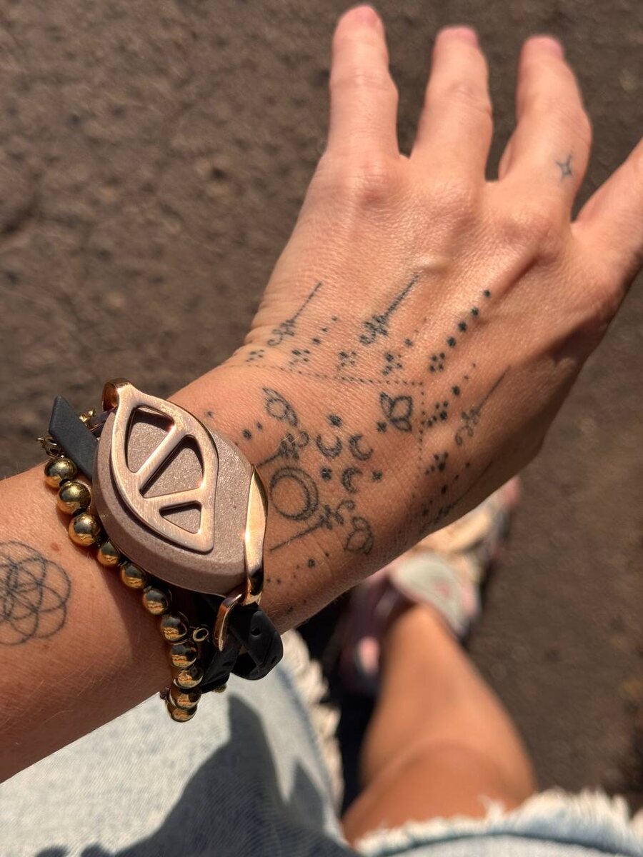🌿 Новая–старая игрушка — Bellabeat 🌿 В 2018 году, когда я ещё только пробовала заказывать с европейских сайтов, я купила себе Bellabeat Leaf — трекер активности в виде дизайнерского браслета. Он выглядел как украшение, а внутри скрывался «умный» гаджет: считал шаги, сон, активность. Спустя 10 лет я попрощалась с Apple Watch. Первый купила ещё в 2015-м, и всё это время они были со мной каждый день. Но в какой-то момент я поняла — не хочу больше жить с часами, которые сидят на руке, как маленький надсмотрщик, и требуют постоянной подзарядки. Сейчас шаги я считаю по телефону, но это не всегда честно: дома я бегаю по лестницам, двигаюсь по тысяче раз, и всё это остаётся «за кадром». И вот — на Ozon я нашла последний Bellabeat, будто специально ждавший меня 🌿. Компания уже закрылась, но у меня снова есть этот артефакт. ✨ Чем он для меня особенный: — выглядит как украшение, а не как гаджет; — не нужно заряжать, батарейки хватает на месяцы; — считает сон — и в отличие от Apple Watch,