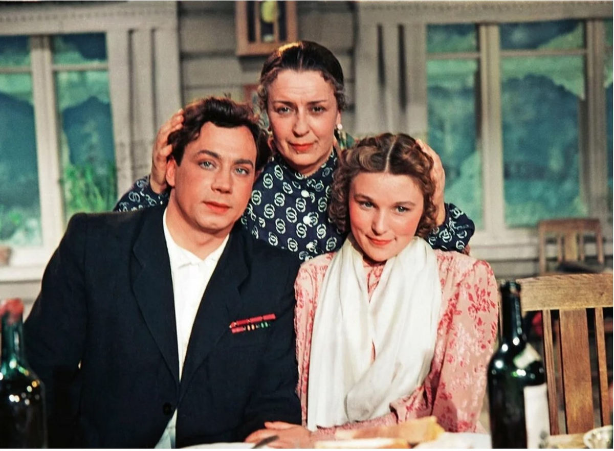 Свадьба с приданым. СССР, 1953. Режиссеры Татьяна Лукашевич, Борис Равенских. Сценарист Татьяна Лукашевич (по пьесе Н. Дьяконова). Актеры: Вера Васильева, Владимир Ушаков, Виталий Доронин, Татьяна Пельтцер, Борис Рунге и др. 45,4 млн. зрителей за первый год демонстрации.
