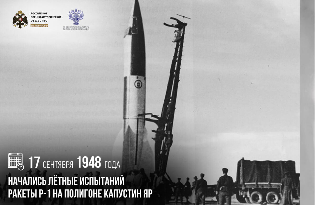 17 сентября 1948 года начались летные испытаний ракеты Р-1 на полигоне Капустин Яр