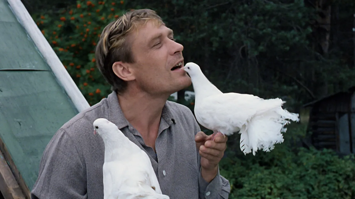 Любовь и голуби. СССР, 1984. Режиссер Владимир Меньшов. Сценарист Владимир Гуркин (адаптация собственной пьесы). Актеры: Александр Михайлов, Нина Дорошина, Людмила Гурченко, Сергей Юрский, Наталья Тенякова и др. 44,5 млн. зрителей за первый год демонстрации в кинотеатрах. Режиссер Владимир Меньшов (1939-2021) поставил пять полнометражных игровых фильмов, три из которых («Москва слезам не верит», «Любовь и голуби», «Розыгрыш») вошли в тысячу самых кассовых советских кинолент. Герои комедии Владимира Меньшова «Любовь и голуби» живут где-то в далекой сибирской деревне. Вася разводит голубей, а его жена Надя хлопочет по хозяйству. Но авторы приготовили герою сюжетный сюрприз, из-за чего вся его жизнь пошла наперекосяк. На экране это выглядит эффектным трюком — падает отпускник Вася, не удержавшись на ступеньках родного порога, и проваливается в глубину ласковой черноморской волны... И ждет его там, как водится, встреча с красивой разлучницей в феерическом исполнении Людмилы Гурченко... А з