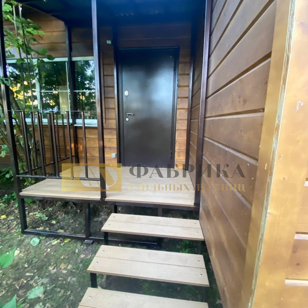 Уличная лестница с площадкой: стиль и долговечность в цвете «Вуд»