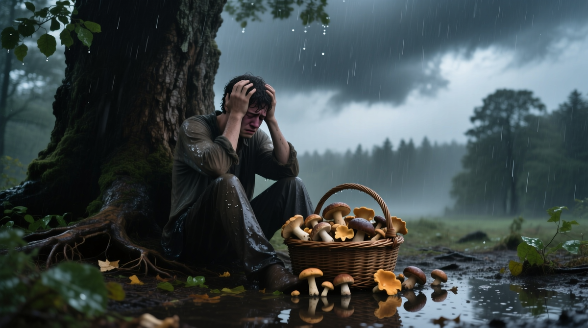 Вот-вот должен был показаться дом, как вдруг небо потемнело, нахмурилось, и хлынул дождь. Я промок до нитки в секунду и в суматохе потерял тропу. Пытался вернуться на знакомое место, но начавшийся ливень смыл все ориентиры. Так я и заблудился, вспомнив бабушкины слова о том, что в дождь по лесу ходить нельзя — мол, леший в такую погоду людей заводит в самую глушь, подальше от дома.