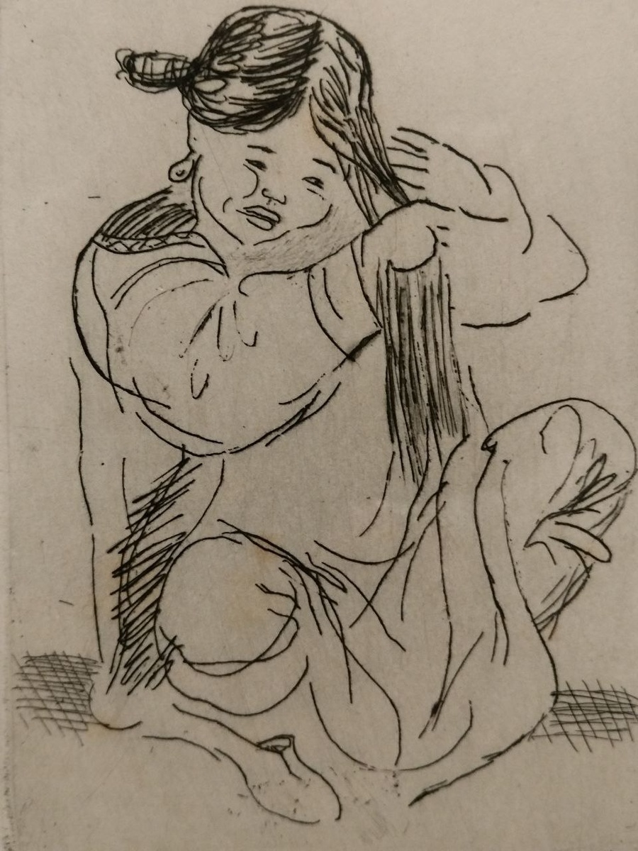 Один из разделов выставки «Курс на Север» посвящён образам нанаек, коренных жительниц Дальнего Востока, в графике советской художницы Евгении Эвенбах (1889-1981). Евгения Эвенбах была пионером советской детской иллюстрации и создательницей первых учебных пособий для народов Севера. Её стиль, точный и выразительный, формировался во время многочисленных экспедиций. В 1934 году Эвенбах отправилась в Приамурье для изучения быта нанайцев и нивхов. Живя в нанайской семье, художница скрупулёзно документировала повседневную жизнь: от традиционного домостроения и рыболовства до распределения ролей в общине. Эвенбах в своих отчётах писала о странных противоречиях: с одной стороны, появлялись женские бригады и школы ликбеза, а с другой — оставались старые традиции, например, многожёнство. Её заметки стали важным источником о жизни местных народов. Графические работы Эвенбах — это живые и достоверные портреты нанаек, написанные крупным планом анфас или в бытовом окружении. Они предстают перед нами