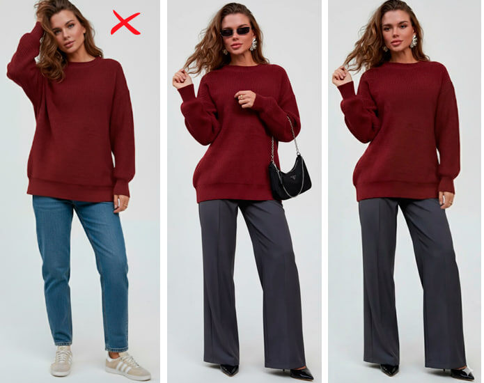 👉🏻соберите свитер на брошь, чтобы скорректировать немного пропорции