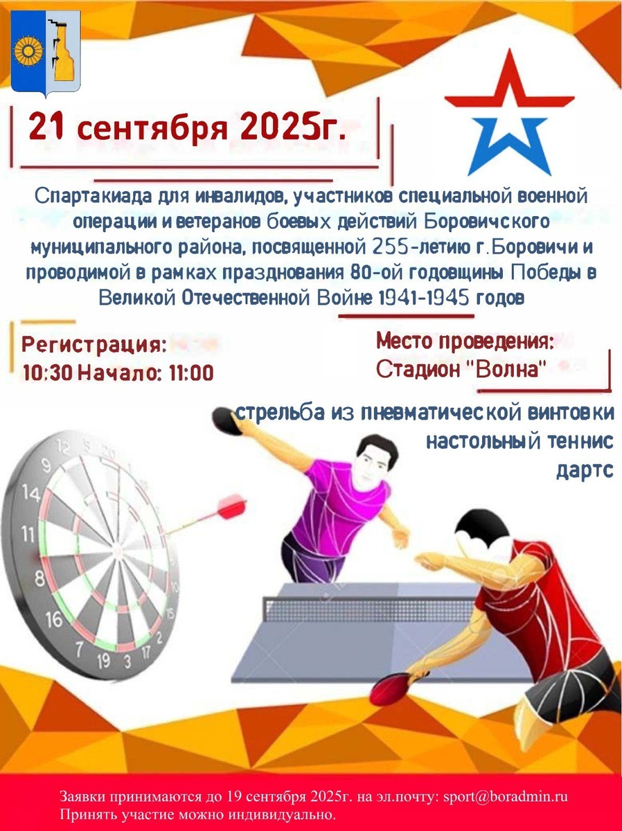 Спартакиада для участников специальной военной операции, ветеранов боевых действий для инвалидов Боровичского муниципального района, посвященная 255-летию города Боровичи и проводимая в рамках празднования 80-летней годовщины Победы в Великой Отечественной войне 1941–1945 годов.
