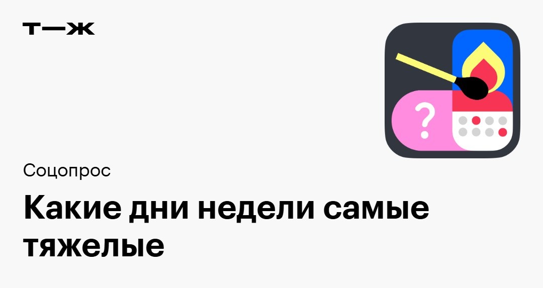 ⚫️Понедельник — день тяжелый? ⚫️Среда — маленькая пятница? ⚫️Пятница — почти суббота? Расскажите, когда на рабочей неделе устаете сильнее, а когда — меньше всего: https://t-j.ru/tg/opros-pro-nedelechku/