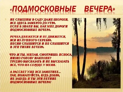 А теперь немного подробностей, ну и эмоций! Песня-то известная, любимая народом! «Подмосковные вечера» с удовольствием распевают не только жители нашей страны, но очень любят иностранцы, стараются исполнить каждый на свой лад. Сегодня трудно себе представить, что, когда «Вечера» были написаны, дело чуть не закончилось грандиозным провалом.
