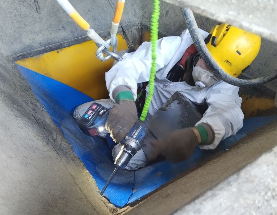 Было принято решение использовать полиуретановые листы толщиной 6 мм — материал, устойчивый к абразивному износу и влаге. Этапы работ: - Подготовка поверхности - Раскрой и подгонка листов - Монтаж футеровки Особенности работы: - Работа в замкнутом пространстве в ОЗП - Доступ к узлам весов осуществлялся через технологические люки с использованием канатных техник АЛЬТЕРУС - ПРОФЕССИОНАЛЬНАЯ РАБОТА НА