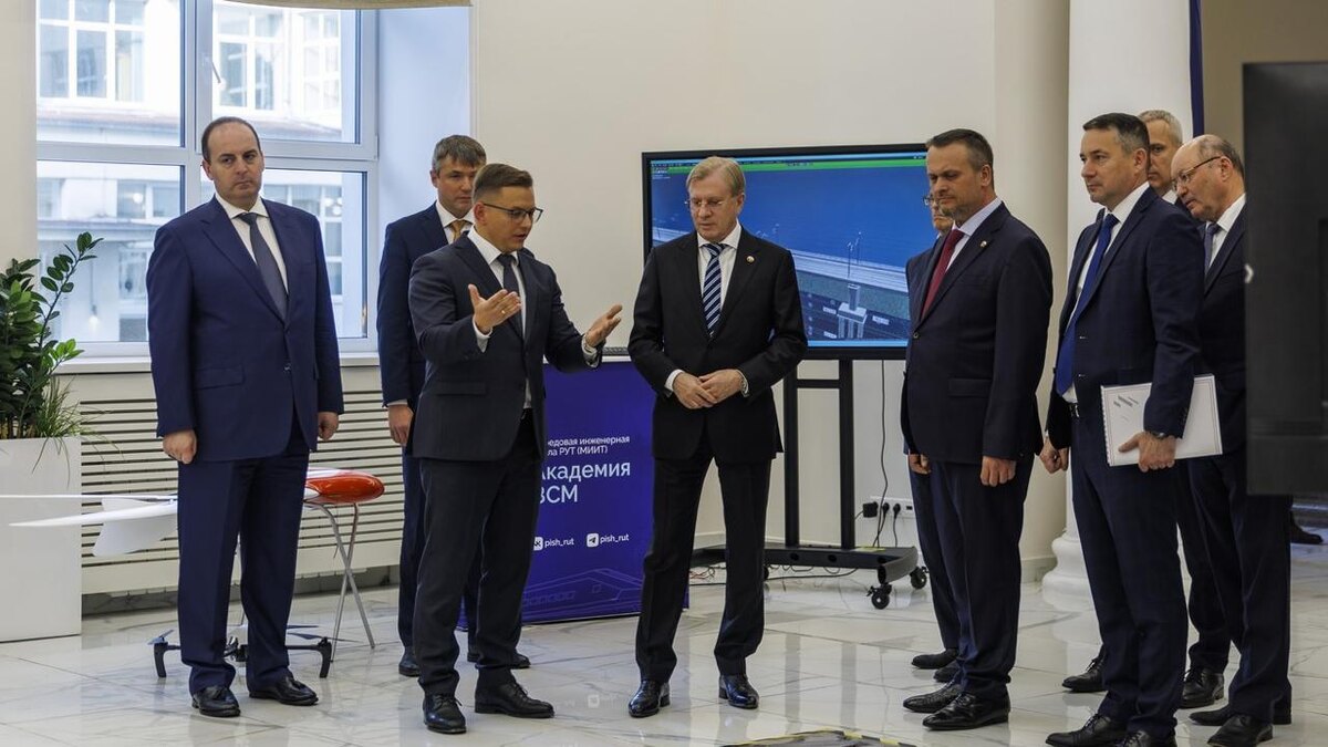 Высокоскоростная ПИШ ❗️Заместитель Председателя Правительства Виталий Савельев и Министр транспорта Андрей Никитин ознакомились с ключевыми разработками передовой инженерной школы «Академия ВСМ» Российского университета транспорта. ➡️В академии сегодня реализуются следующие направления работы: 🔹подготовка инженерных кадров и специалистов нового поколения, 🔸научно-техническое и экспертное сопровождение первой высокоскоростной магистрали – ВСМ-1 Москва – Санкт-Петербург на стадии проектирования и строительства, 🔹формирование инновационной базы для развития транспортной отрасли страны. ➡️Вице-премьеру и министру продемонстрировали цифровую модель участка ВСМ Москва – Санкт-Петербург, созданную студентами и преподавателями в рамках сквозного инженерного проекта. В ситуационном центре Виталий Савельев и Андрей Никитин ознакомились с системой мониторинга строительства. 💬Вице-премьер Виталий Савельев отметил: Академия ВСМ Российского университета транспорта – уникальный научный центр