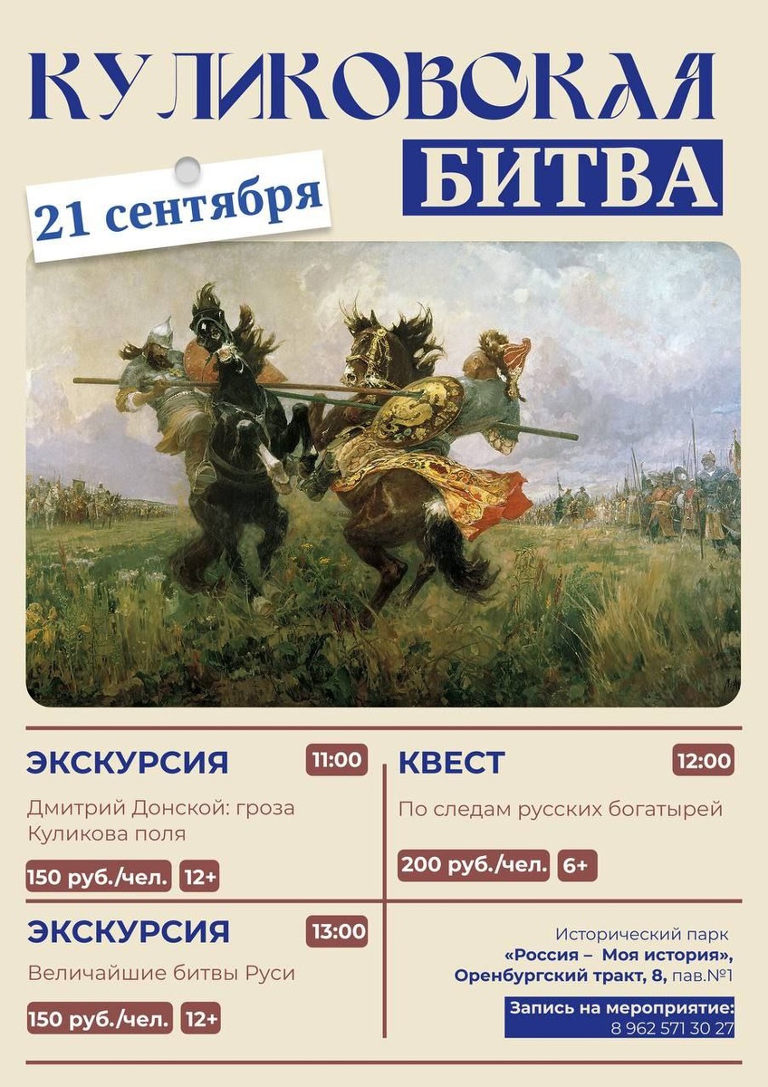 В Историческом парке «Россия — Моя история» состоится юбилейная программа, посвящённая победе Дмитрия Донского над войском Мамая.