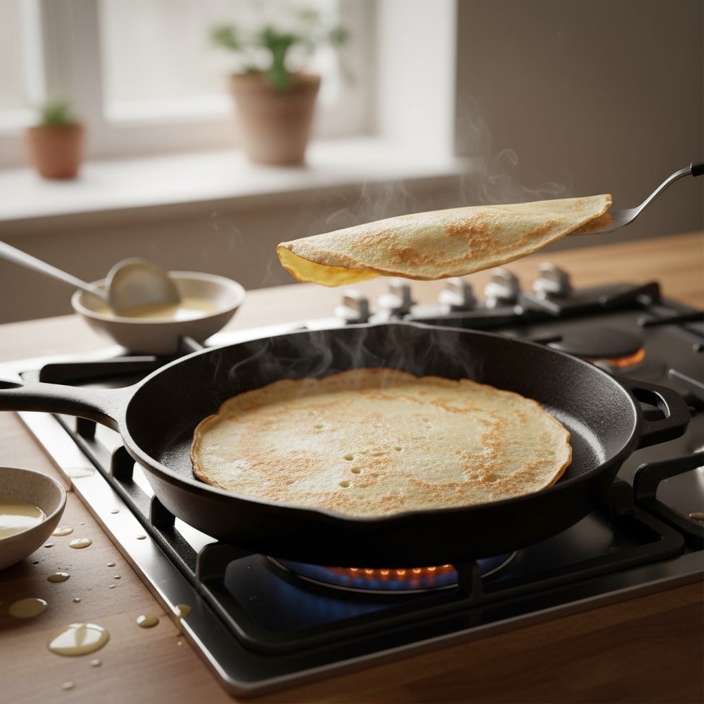 Рекомендация: Разогревайте сковороду до средней температуры перед тем, как налить тесто. Проверить готовность можно каплей воды: если она шипит и быстро испаряется, значит, сковорода готова.