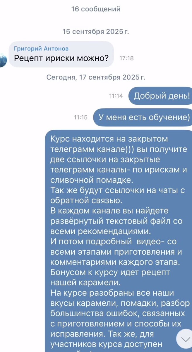 "Всегда мечтала, чтобы у меня случилась какая-нибудь треш-переписка, и вот, случилось. Мужчина попросил рецепт ирисок, но на мое предложение купить рецепт отреагировал неадекватно в духе:"А вам слабо сделать доброе дело?" Предложила приехать ко мне и посидеть с детьми, сделать домашние дела вместо меня - сделать доброе дело, на что получила отказ. А как бы вы отреагировали на это предложение? Приехали бы посидеть с детьми в обмен на рецепт?" ❓Как вы объясняете людям, что ваш рецепт/знание/навык - это результат большого труда и вложений, а не «мелочь»? ❓Стоит ли вообще вступать в дискуссию с такими людьми или лучше сразу вежливо отказать и прекратить диалог? ❓Предложите самое абсурдное «доброе дело», которое можно было бы ему предложить в ответ) ❓А если бы мужчина согласился, вы бы доверили ему детей (Если бы были на месте кондитера)? ❓Приехали бы вы сидеть с чужими детьми в обмен на рецепт? ❓Расскажите о своих самых необычных мечтах. Если у вас есть история, рецепт или совет, которыми