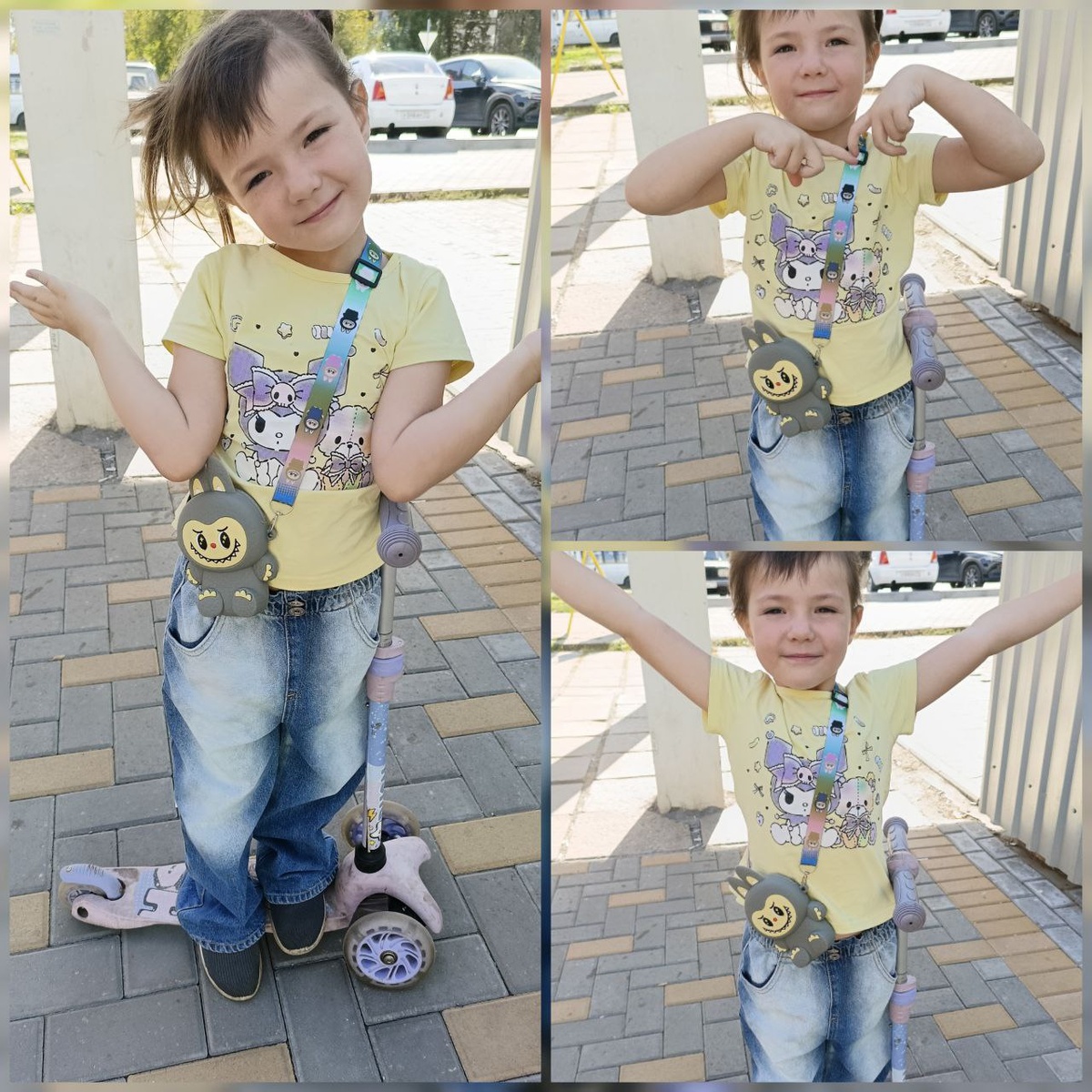 Маленькая модница выбрала себе кашемировые свитер, вельветовые штанишки, кроссы и, конечно, сумочку (на фото) 😃🥰